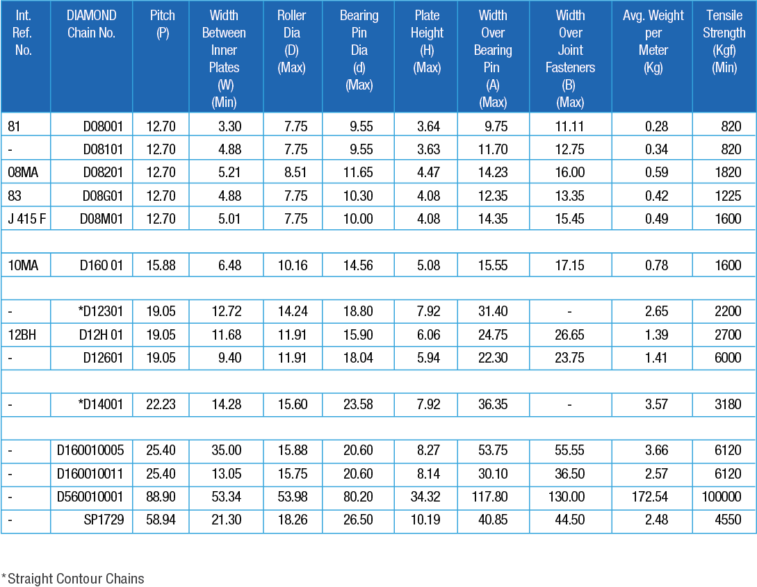 Roller chains designed for use in mechanical power transmission systems.