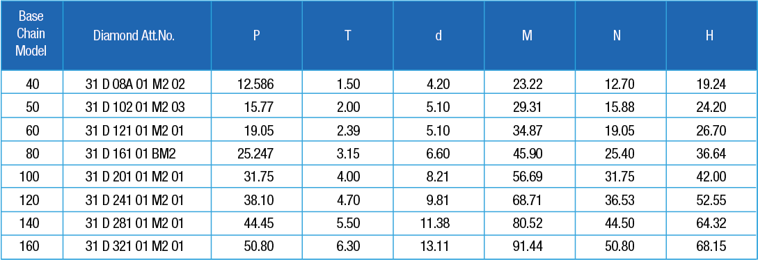 Note: Please select the required attachment plate and specify the frequency of positioning the attachments while ordering for chains.