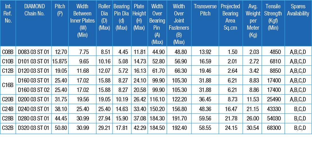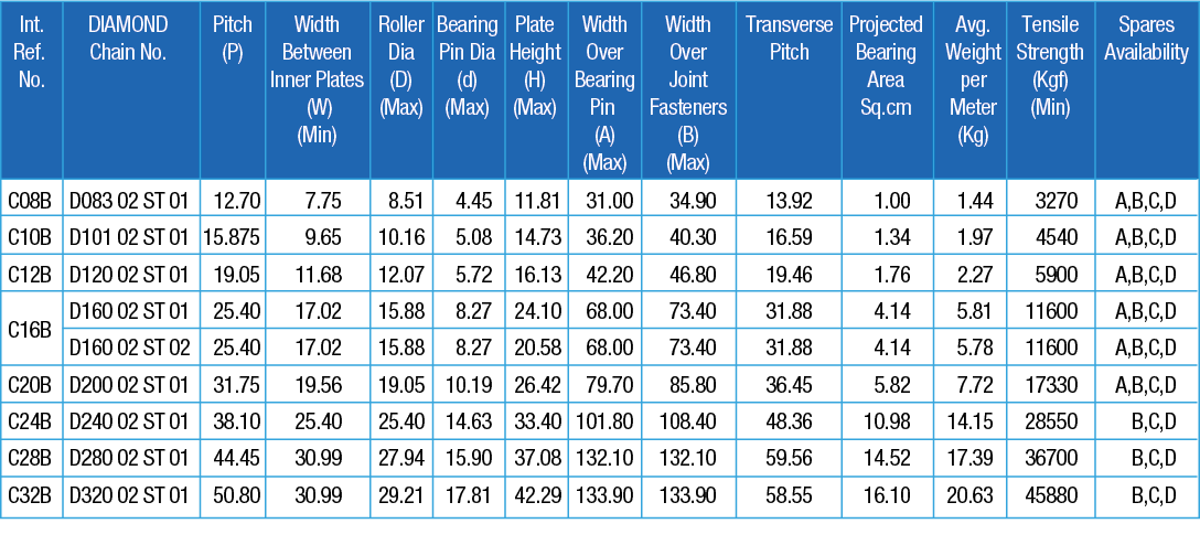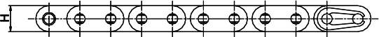 The straight plate chains are identical to the corresponding European series standard chains except for the straight side plates. The chains have higher fatigue resistance than the standard chains.
